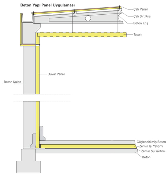 Sandwich panels produced with eccentric lock system can be easily combined thanks to this system. Thanks to the male-female joint detail between the two joint surfaces, a perfect, heat-bridged, leak-proof joint is provided after application.