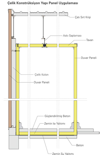 Sandviç paneller modüler yapısı sayesinde çelik konstrüksiyonlu yapılarda veya betonarme binalarda kolaylıkla uygulanabilmektedir.