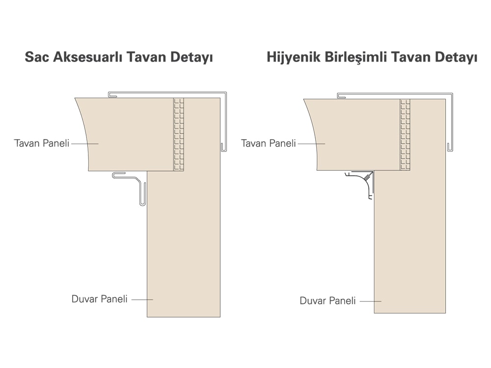 Sandwich panels produced with eccentric lock system can be easily combined thanks to this system. Thanks to the male-female joint detail between the two joint surfaces, a perfect, heat-bridged, leak-proof joint is provided after application.