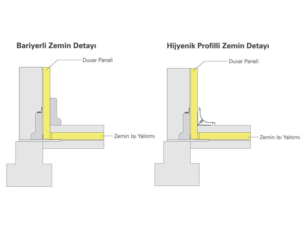 Mit diesem System lassen sich Sandwichelemente, die mit einem Exzenterverschlusssystem hergestellt wurden, einfach verbinden. Dank der Haken-Öse-Verbindungsdetails zwischen den beiden Verbindungsflächen wird nach dem Auftragen eine hervorragende, wärmebrückenfreie Abdichtung gewährleistet.