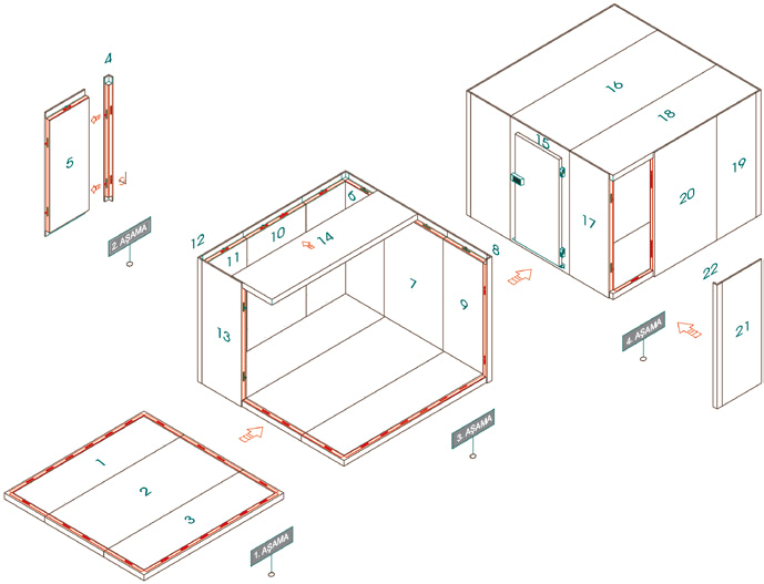 Modulare Kühllagerräume sind vorgefertigte Räume, die aus zerlegten Platten bestehen und eine lange Lagerung aller Lebensmittel, Chemikalien und Medizinprodukte ohne Verderb ermöglichen. Modulare Räume sind Systeme, die aufgrund ihrer vorgefertigten Struktur leicht zusammengebaut werden können, können bei Bedarf entfernt und an einen anderen Ort bewegt werden und können je nach Bedarf erweitert werden.